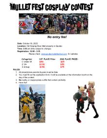 ✅ All props (swords, knives, guns, etc.) must be fake✅ Registration required at the Information Booth on contest day